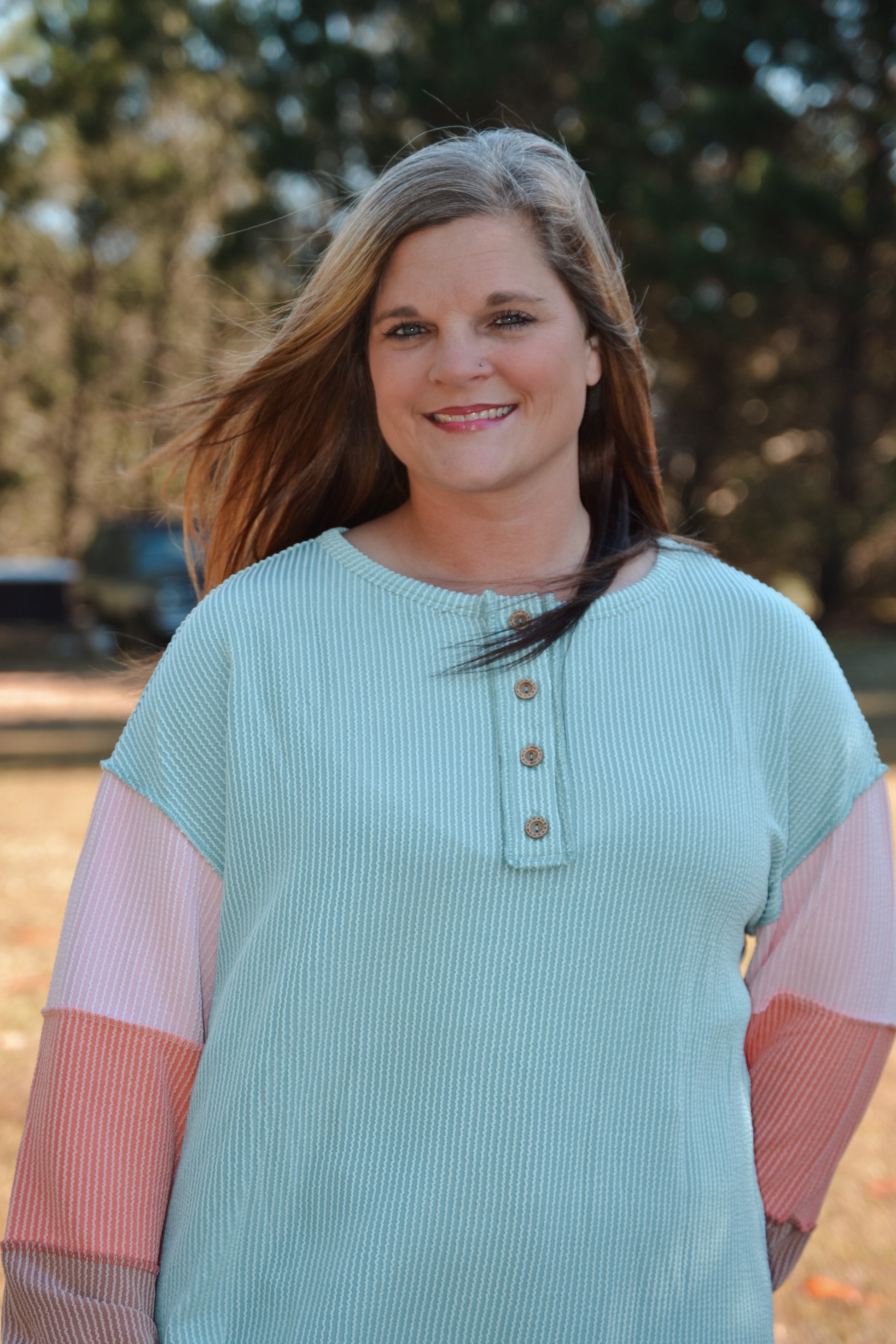 Bring a little western charm to your everyday look with the Sage Canyon Colorblock Henley. This cozy top features a unique twisted ribbed knit that adds texture and personality, while the colorblock sleeves in soft, earthy tones give it that effortless boho feel. The Henley button neckline adds a timeless western touch, perfect for layering under shackets or wearing solo with your favorite denim.